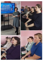 Основной акцент на встрече с педагогами был сделан на посыле Главы государства о том, что воспитать патриота может только патриот. Колоссальная ответственность лежит на плечах школьных учителей, за сохранение преемственности наших традиционных ценностей. Главное в них – любовь к своей стране. Нужно отметить, что педагоги не только словом, но и делом выполняют эту задачу. Ребятам много говориться об истории Беларуси, о том, сколько мужества проявил наш народ в годы Великой Отечественной войны. Проводится множество патриотических мероприятий. А еще в школе действует передвижная музейная репродукция, которая выставляется на районных и областных праздниках, других событиях. Ее подготовили учителя вместе с детьми. В этом есть свой символизм, нерушимая связь поколений.